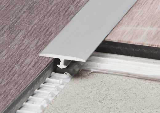 Schlüter-VINPRO-T jest teownikiem wykonanym z aluminium anodowanego, który można wbudować w późniejszym czasie, jako połączenie bezprogowe pomiędzy graniczącymi ze sobą wykładzinami ( np. podłogami LVT, laminatami, parkietem itp. ) leżącymi na tym samym poziomie. Przed osadzeniem profilu VINPRO-T, spoina pomiędzy graniczącymi między sobą wykładzinami powinna zostać wypełniona klejem montażowym Schlüter-KERDI-FIX lub podobnym materiałem. Potem można profil przejściowy wcisnąć w spoinę. Schlüter-VINPRO-T przykrywa graniczące ze sobą krawędzie wykładzin oraz zapobiega przed ich uszkodzeniami.
