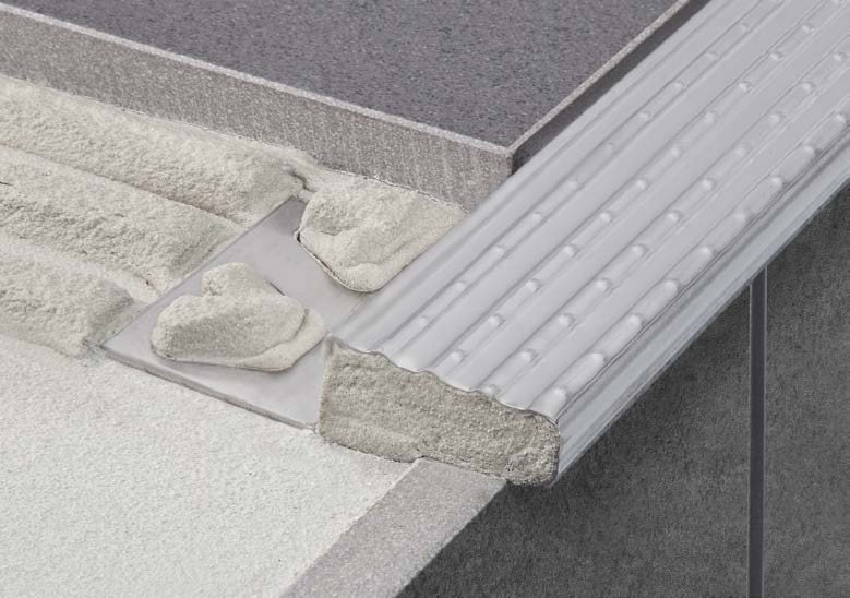 Schlüter-TREP-E jest specjalnym profilem ze stali stopowej posiadającym antypoślizgową budowę, przeznaczonym do bezpiecznego i eleganckiego wykończenia krawędzi stopni. Profil ten stosować można zarówno w połączeniu z wykładziną ceramiczną, z kamienia naturalnego lub też wylewką jastrychową lub innymi materiałami wykładzinowymi od 2 mm grubości.