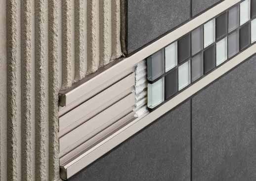 Schlüter-QUADEC-FS jest wysokiej jakości profilem bordiurowym przeznaczonym do szczególnie atrakcyjnego wykończenia okładzin ściennych we wnętrzach. Nadaje się do łączenia z innymi odpowiednimi profilami narożnymi serii Schlüter-QUADEC. Profil Schlüter-QUADEC-FS posiada dwie widoczne ok. 10-milimetrowe krawędzie. W mierzącej 50 mm wolnej przestrzeni profilu można umieścić materiał używany w okładzinie ściennej lub wkładki dekoracyjne z innych materiałów.