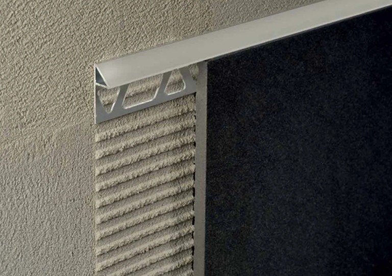 Trialjolly TJ to profil, który pozwala stworzyć eleganckie wykończenie na ścianach z okładziną ceramiczną. Kąt 45° utworzony przez profil precyzyjnie i funkcjonalnie zdobi nieestetyczną i ostrą krawędź płytki.