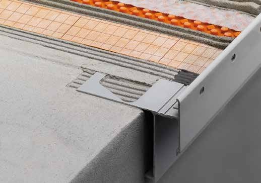 Schlüter-BARA-RAKE/-RAKEG jest profilem z okapnikiem zakańczającym nieosłonięte krawędzie konstrukcji balkonów i tarasów, montowanym na warstwie jastrychu ułożonego ze spadkiem.. Profil Schlüter-BARA-RAKE nadaje się w szczególności do konstrukcji z drenażem zespolonym Schlüter-DITRA-DRAIN. Perforowana krawędź profilu umożliwia estetyczne wykończenie. Profil zakrywa poza tym otwarty brzeg ułożonego pod posadzką drenażu zespolonego Schlüter- -DITRA-DRAIN, przy czym dzięki perforacji zapewniony jest dostateczny przekrój do odwodnienia i wentylacji konstrukcji. Trapezoidalnie perforowane ramie mocujące profilu Schlüter-BARA-RAKE przykleja się na krawędzi jastrychu za pomocą hydraulicznie wiążącego kleju do płytek. Jako uszczelnienie zespolone można stosować Schlüter- -KERDI. Możliwe jest również zastosowanie szpachlowych mas uszczelniających na bazie chemicznej.
