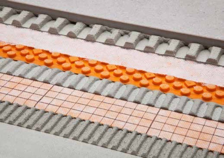 Schlüter-DITRA-DRAIN 4 nadaje się w szczególności do stosowania we wnętrzach oraz na mniejszych powierzchniach na zewnątrz budynków. Schlüter-DITRA-DRAIN 8 wykonana jest z twardej folii polietylenowej z jednostronnie uformowanymi jako ścięte stożki wgłębieniami i obustronnie naniesionej włókniny filtracyjnej z polipropylenu. Naniesiona od spodu włóknina filtracyjna służy do zakotwienia zaprawy cienkowarstwowej, która nakładana jest ząbkowaną kielnią (zalecenie: 4 x 4 mm lub 6 x 6 mm) na uszczelnieniu zespolonym i całkowicie zatopiona w DITRA-DRAIN 8